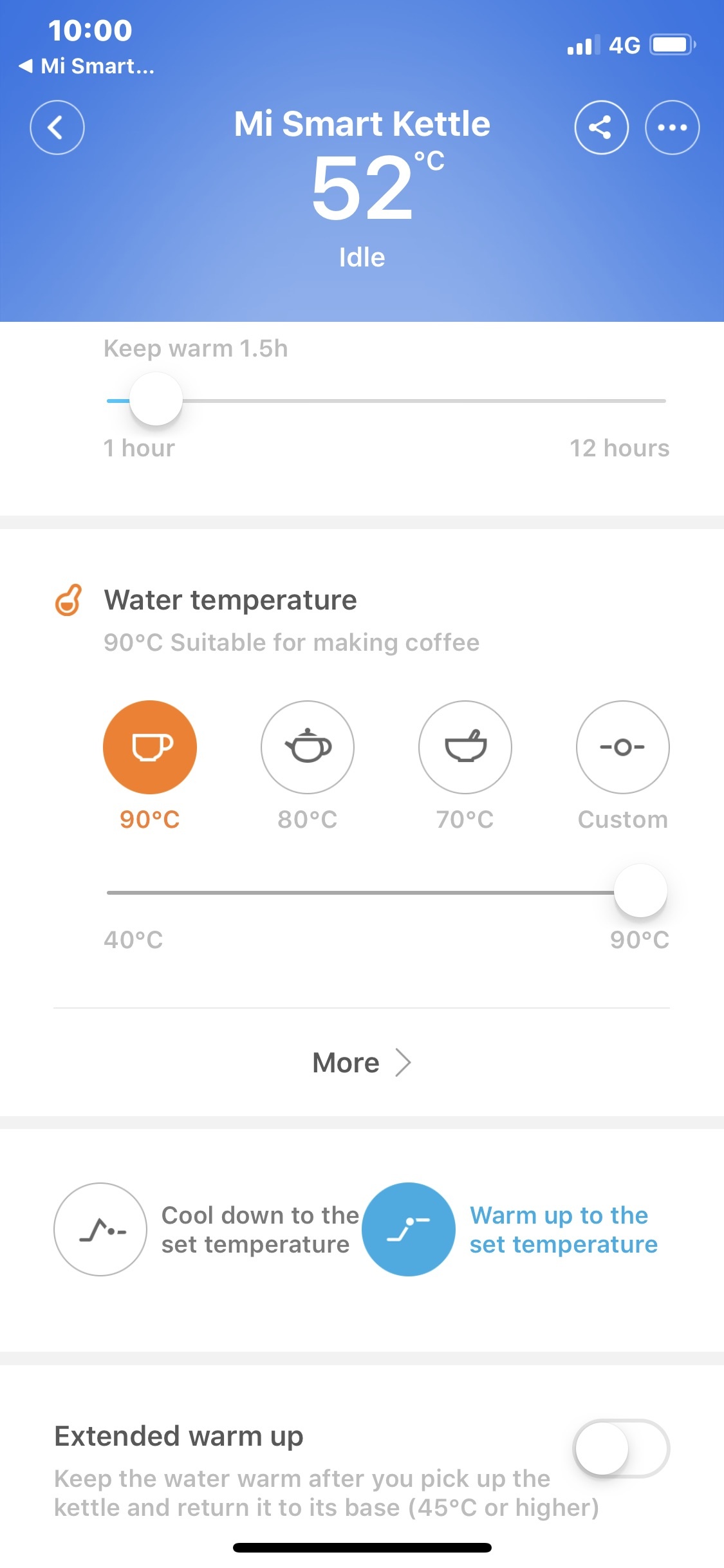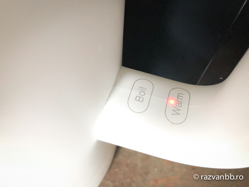 Și mai are o treabă mișto. Dacă a ajuns la temperatura prestabilită o și păstrează o perioadă de timp la acel nivel, astfel nu ești nevoit să te apuci imediat de preparat cafeaua sau ceaiul. Perioada o poți stabili din aplicație. Astfel te trezești dimineața. apeși pe buton și te duci să faci duș sau ce mai faci tu dimineața (citești o carte de exemplu) și când te întorci în bucătărie ai apa la temperatura dorită. E genial și nu mă mai pot despărți de el.