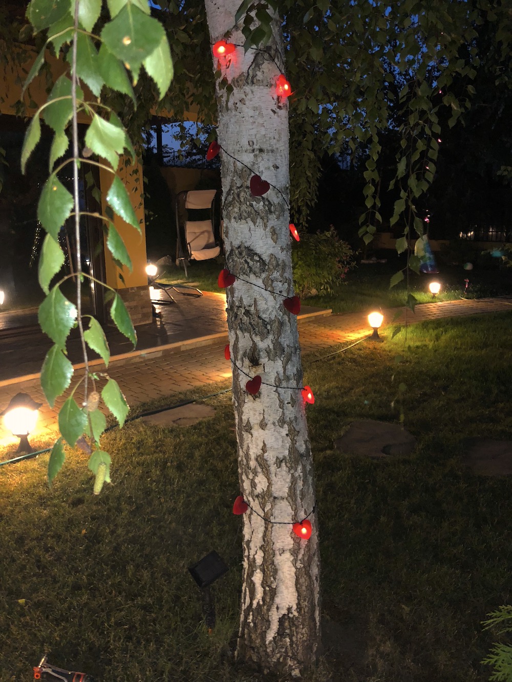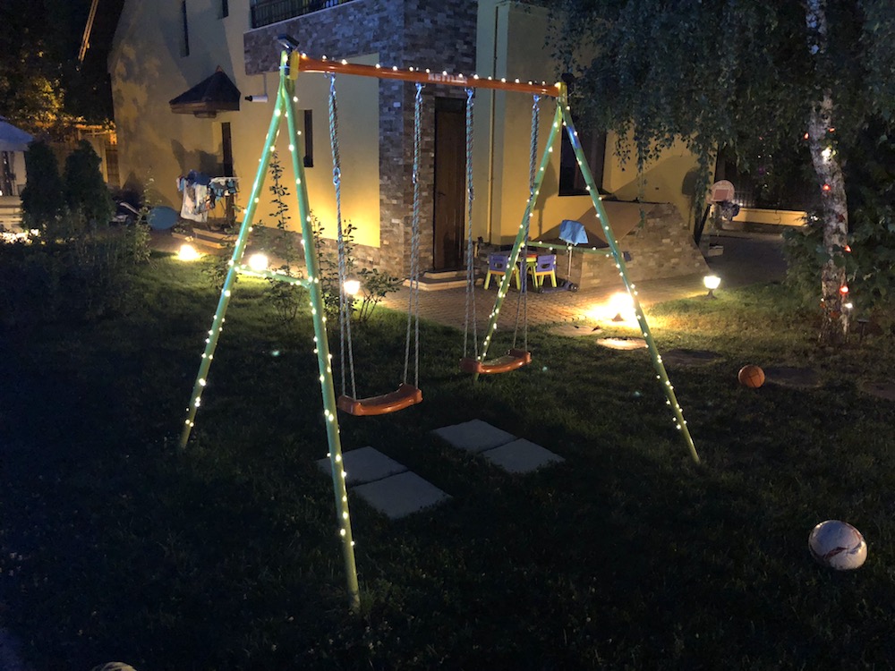 În paralel am cumpărat niște chinezării de pe Amazon UK care au îndurat ninsoare, furtuni, ploi abundente, vânturile lu’ Firea și călduri insuportabile și încă mai funcționează și acum într-o proporție de 100%. Da, tot cu acumulatori cu încărcare solară. Și da, nu le-am dat jos de la Crăciunul de anul trecut. Așa ne place nouă să avem sărbătoare în fiecare zi a anului! 🙂