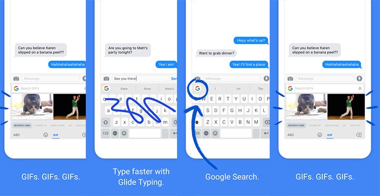 Ne pun la dispoziție tot felul de gif-uri animate, meme-uri, emoticoane din ce în ce mai animate și chiar posibilitatea de a căuta pe net direct în tastatura virtuală (gboard de la Google de exemplu).