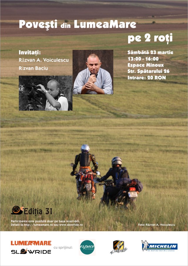 Sau direct pe adresa de mail contact at slowride punct ro. Puteți să fiți și conservari… adică din ăia ca mine care se dau doar cu mașina. 🙂
