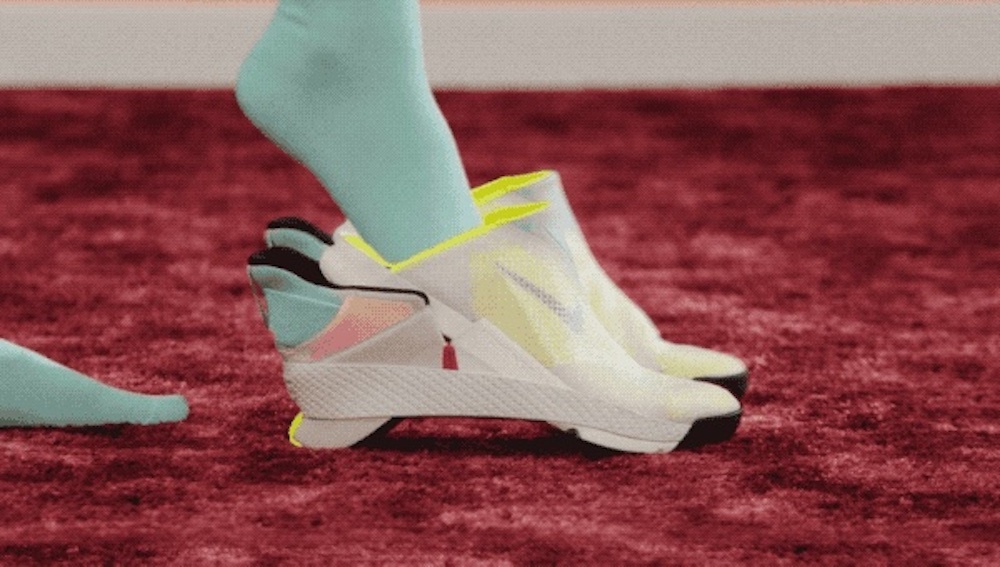 Un close-up co sistemul de rupere a tălpii și elasticul care aduce călcâiul la locul lui: