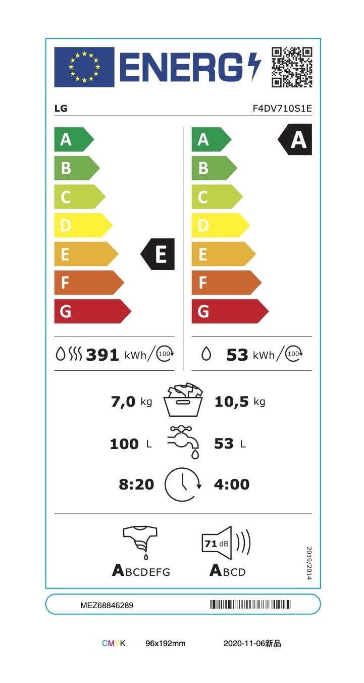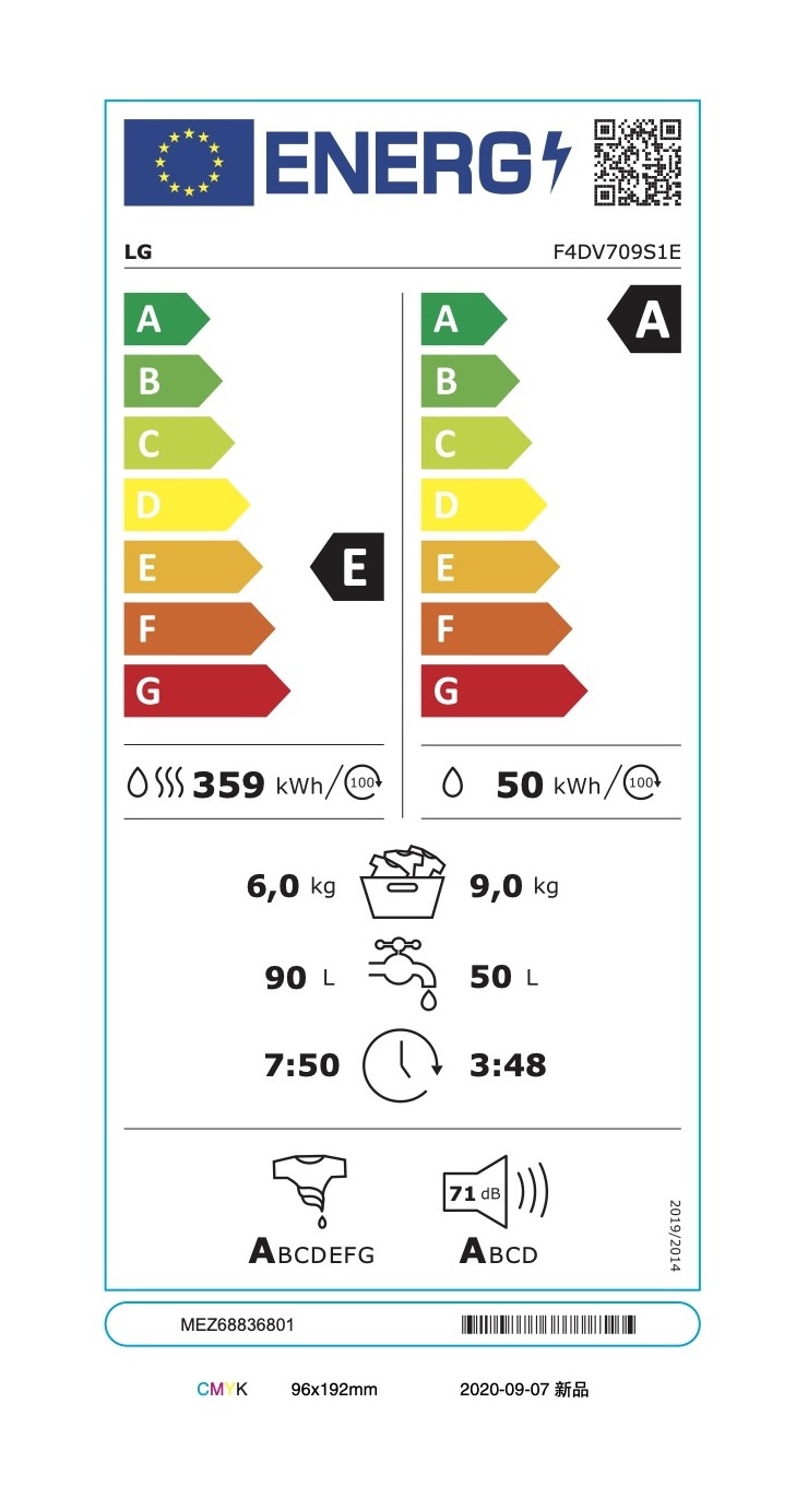 Partea interesantă este că fiind cu două funcții vor avea și etichete diferite față de alte tipuri de electrocasnice. Vor avea două coloane care vor specifica separat clasa din care face parte funcția de mașină de spălat și respectiv clasa din care va face partea funcția de uscare.